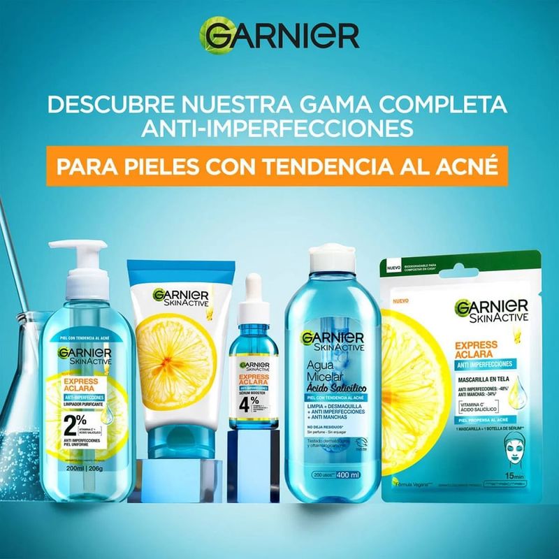 Gel Limpiador Garnier Anti-Imperfecciones Express Aclara 200 ML Gel Limpiador Garnier Anti-Imperfecciones Express Aclara 200 ML
